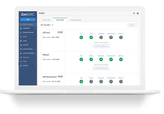 ZenGRC supports painless self-auditing so you can prove HIPAA compliance. With so much of that heavy lifting done for you, the compliance process (complete with security features) is simplified, to create peace of mind.