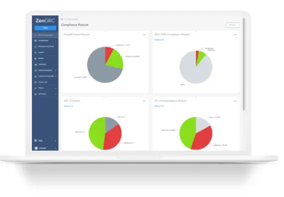 ZenGRC offers advanced analytics and reporting tools for in-depth ISO compliance monitoring. These insights help organizations analyze compliance performance, identify trends, and make data-driven decisions for continuous improvement.